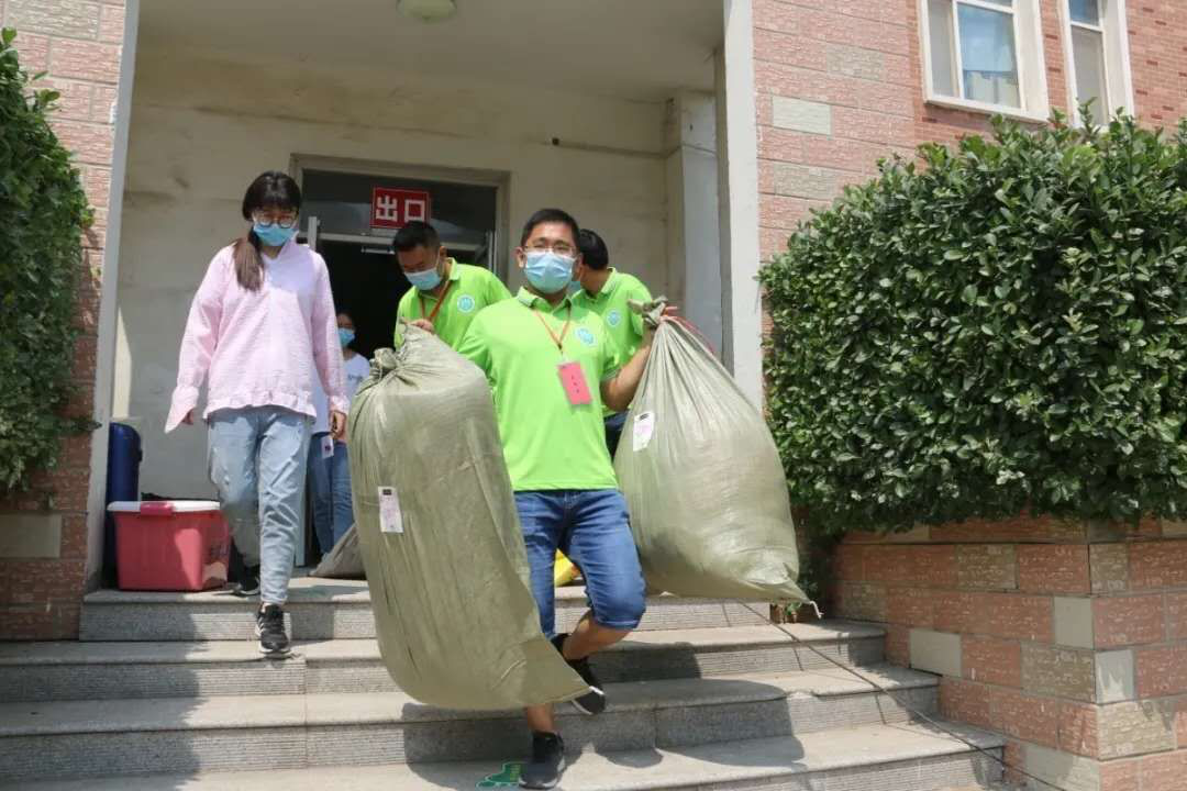 毕业生返校期间,理工系三个教师党支部的30余名党员组成的志愿队,冒着炎炎烈日,兵分两路,一路协助辅导员完成学生离校手续办理,另一路协助学生整理宿舍、搬运行李。因此食堂大厅和学生宿舍成为了老师们的“战场”。无论是办理手续、打包行李还是在搬运路上,教师党员们总会陪伴在学生身边,主动与学生沟通,聊一聊心情,说一说就业,听一听问题,鼓励学生们积极应对疫情,主动谋划就业,要学会在逆境中成长。毕业生对教师志愿者的贴心服务非常满意,主动向老师献花,和老师合影,向老师鞠躬谢恩,在一句句“谢谢老师、您辛苦了、您多保重、我会回来看望您的”的话语中和老师们依依惜别。