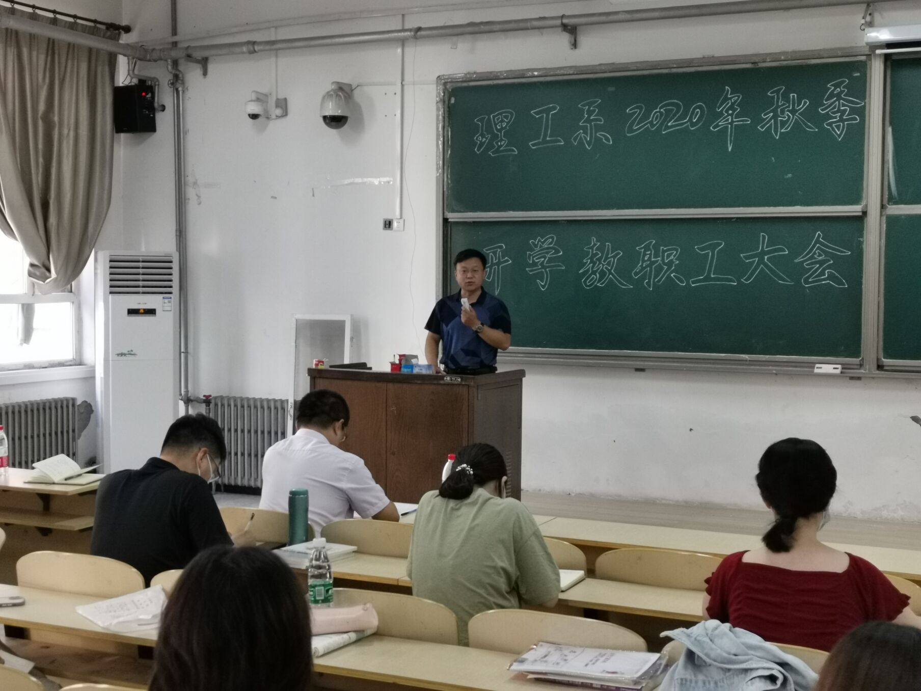 为切实做好疫情防控,保障2020年秋季复学各项工作顺利开展,9月8日,理工系在二教3-113教室召开2020年秋季开学教职工大会。理工系党总支书记王伟、系主任马晶军、副主任周欣、全体教职工和辅导员参加会议,会议由马晶军主持。