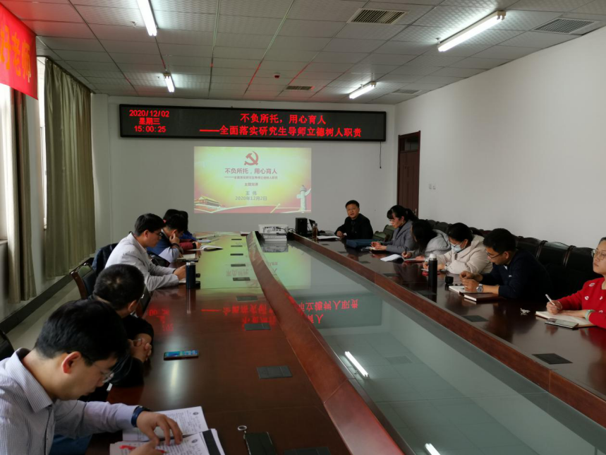 为学习贯彻习近平主席在全国研究生教育会议上的指示精神,全面落实教育部关于研究生导师立德树人职责的有关要求, 12月2日,理工系党总支在崇德楼0916举办“全面落实研究生导师立德树人职责”主题党课。党课由理工系党总支书记王伟主讲,理工系系主任马晶军、全体硕士生导师和教师代表参加了党课学习。