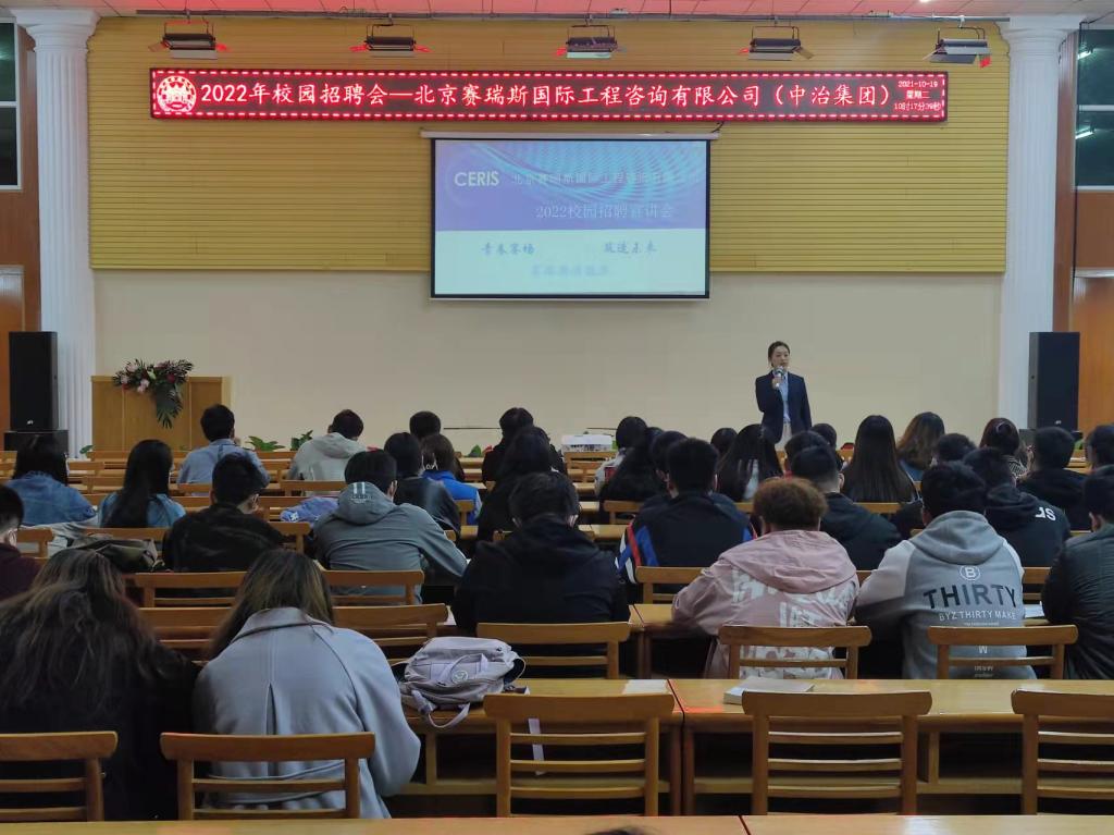 10月19日上午,理工系邀请该企业来到渤海校区召开校园招聘宣讲会。北京赛瑞斯国际工程咨询有限公司全过程咨询事业部张松波经理、人力资源部刘颖敏经理和我系工程管理专业、水利水电工程专业2022届毕业生参加了宣讲会。
