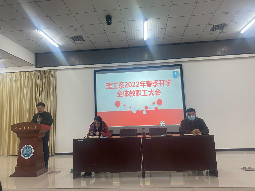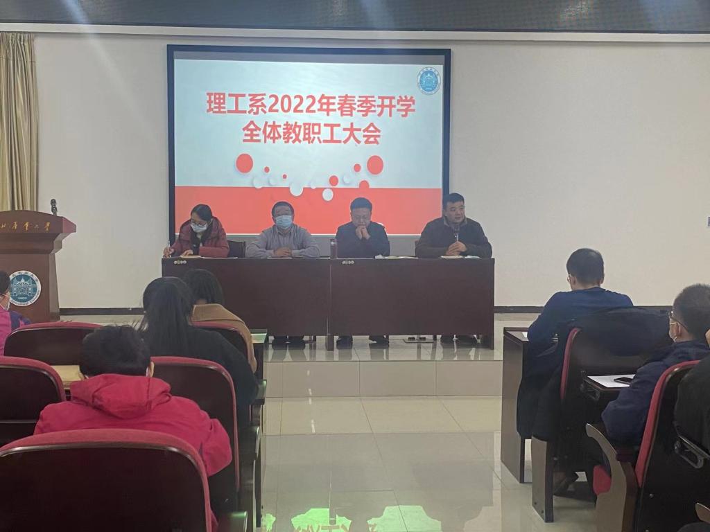 3月1日,理工系在崇德楼报告厅召开春季新学期全体教职工大会,全面总结2021年工作,安排部署2022年重点工作。渤海学院常务副院长马晶军、理工系党总支书记王伟、副主任周欣、副主任刘雅举、全体教职工和辅导员参加会议。
