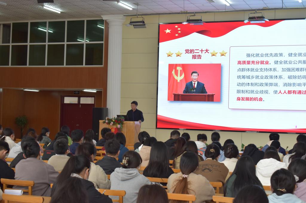 王伟对毕业生进行就业动员讲话,以“树立正确就业择业观,实现人生价值高发展”为主题,为2023届毕业生上了一堂思政课。他结合党的二十大报告中关于就业的阐述和2023届全国普通高校毕业生就业工作第二次调度视频会会议精神,从多角度对当前的就业形势和毕业生的求职心态进行分析,指导大家通过提前了解行业和岗位、提升自我丰富求职经验、做好自我认知三方面缓解就业压力,要求大家要把握机遇,切不可好高骛远,要将自身实际和目标结合,做好个人求职规划。