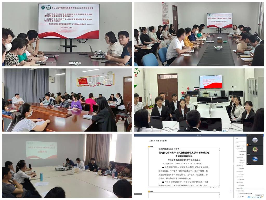 理工系领导班子采取集中学习研讨,以上率下引领学,坚持班子带头,当好表率,以更高标准、更严要求、更实措施抓好集中学习。各党支部注重针对实效,分类指导推动学。研究生党支部和教师第三党支部联合开展专题学习,座谈会上教师党员代表和研究生党员代表各自发表了学习感悟,双方表示通过学习要真正达到“理论学习+师生共建+科研共创+人才共育”的效果。教师党支部观看了习近平总书记在雄安新区和沧州考察调研的视频报道,并就学习习近平总书记重要讲话精神,结合自己科研领域和学科发展纷纷发言献策。学生党支部围绕“凝心铸魂筑牢根本”,采取支委会和党小组会领学,紧密围绕思想、学习和工作实际谈认识、谈收获、谈打算。