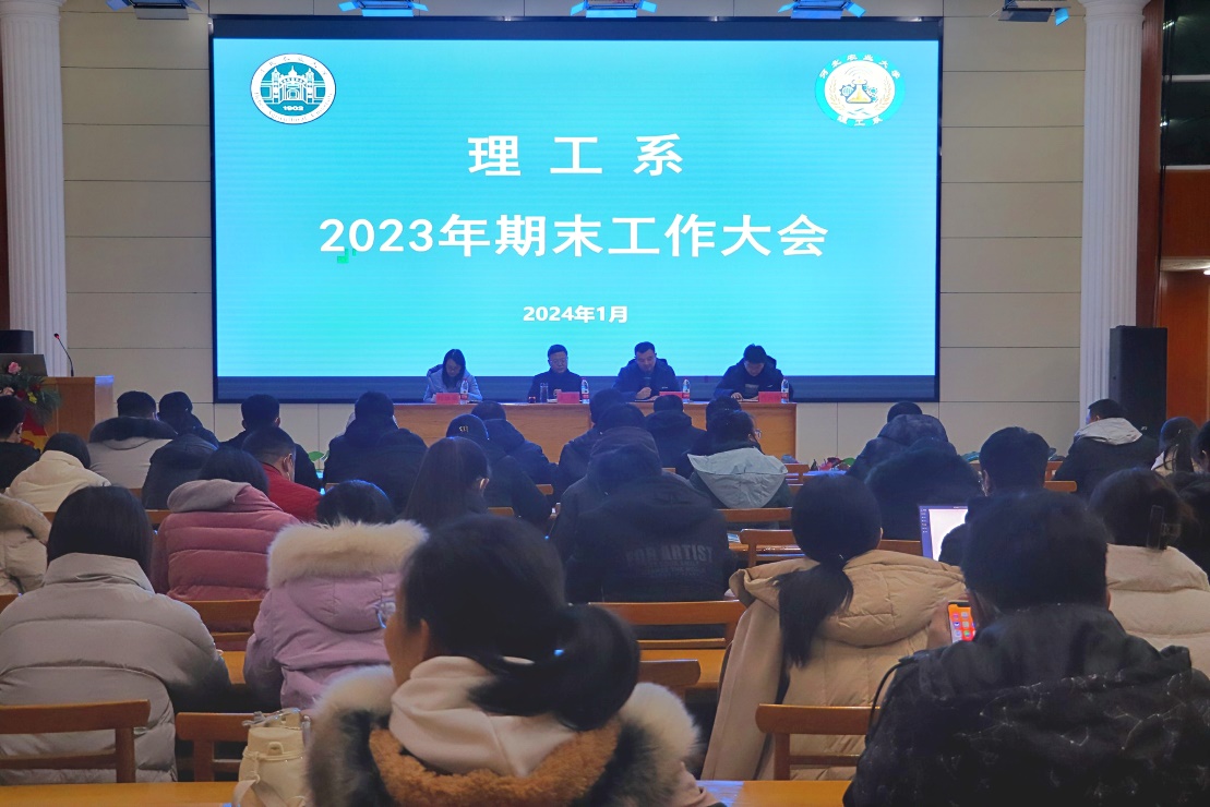 1月3日,理工系在大学生活动中心召开2023期末工作大会,理工系党总支书记王伟、副主任周欣(主持行政工作)、副主任刘雅举、主任助理刘兴旺、全体教师和辅导员参加会议。周欣主持会议。
