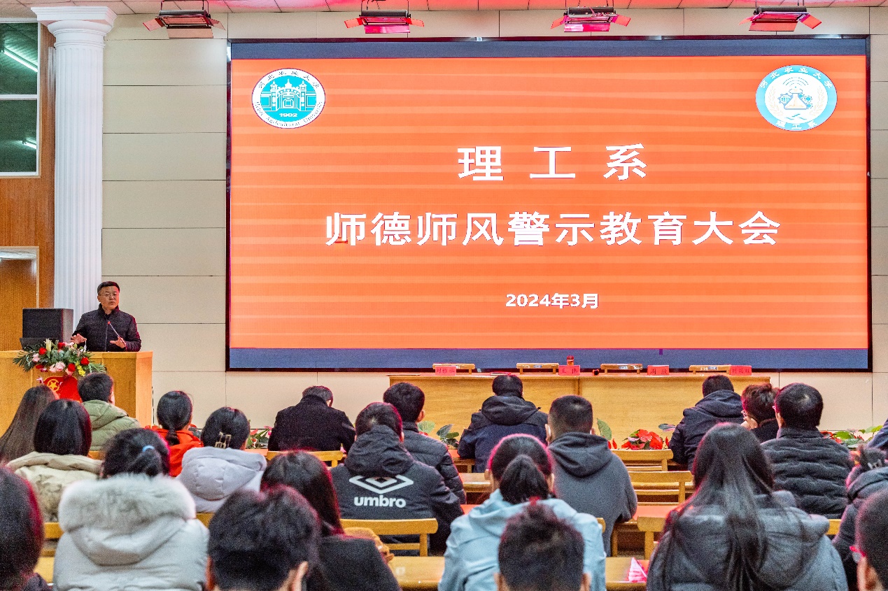 3月5日,理工系在大学生活动中心召开2024年春季学期工作大会暨师德师风警示教育大会。理工系党总支书记王伟、副主任周欣(主持行政工作)、副主任刘雅举、主任助理刘兴旺、全体教师和辅导员参加会议。