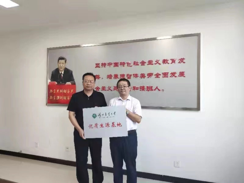 优质生源基地”牌匾。理工系主任马晶军、副主任周欣与河北安国中学校长焦建军等代表共同参加协议签署和牌匾授予仪式。