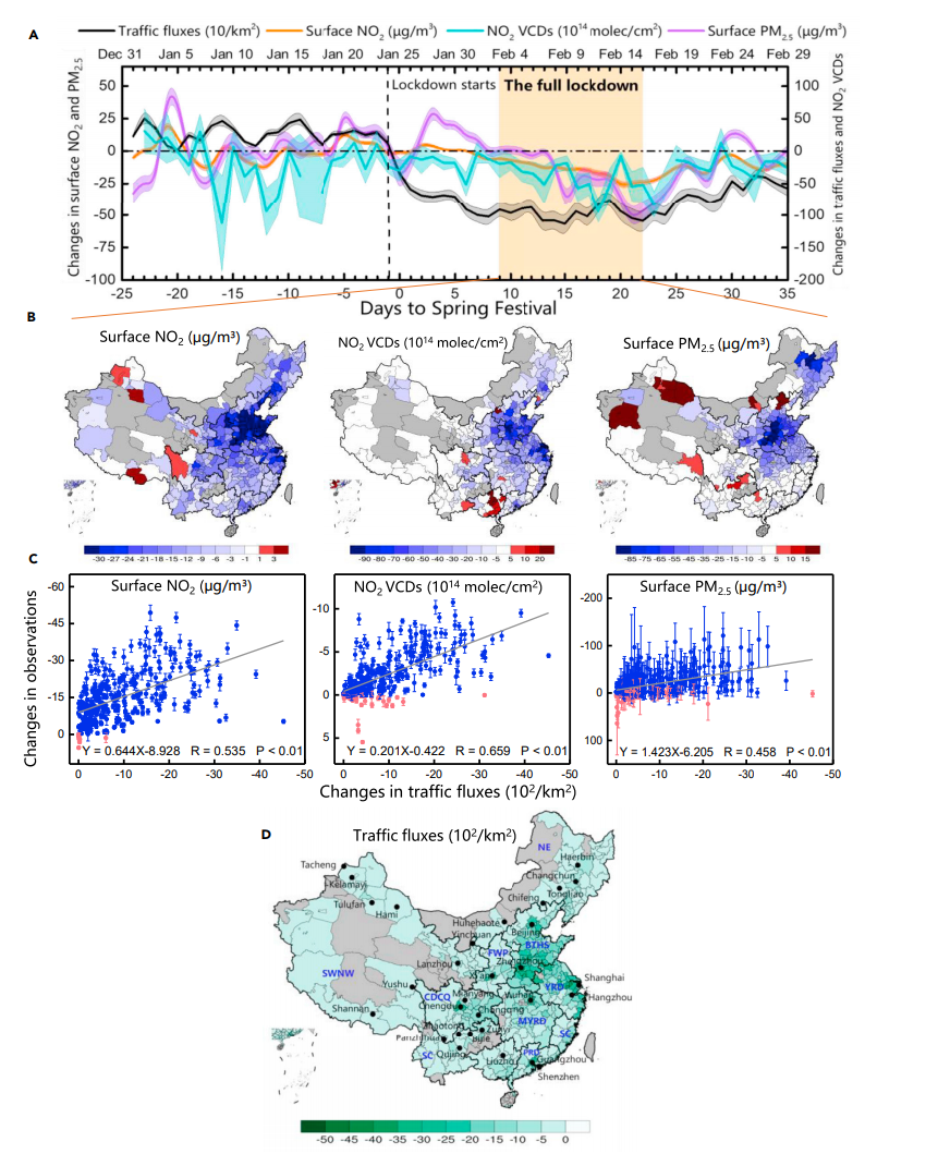 图1 新冠肺炎疫情封城期间,交通流量降低与空气质量改善的量化关系