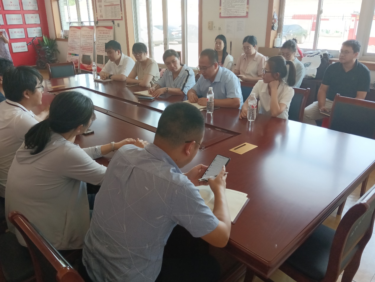现场研讨阶段,各村党支部书记就各村的产业特色、发展规划及存在的问题进行了详细的介绍,迫切希望更多的专业科研团队为乡村建设提供技术支持。理工系专业教师团队与“村党支部书记团”就各村重点关注的盐碱地作物种植、盐碱地开发利用、食品加工及副产品开发等问题进行深入交流,并对急需解决的难题进行了梳理和记录。