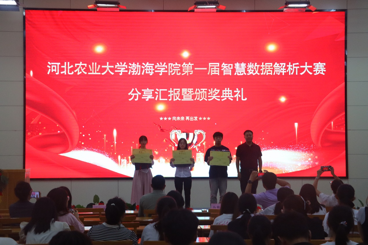 7月1日,由渤海学院主办、理工系承办的“18luck新利手机版iso 渤海学院第一届智慧数据解析大赛分享汇报暨颁奖典礼”圆满落幕。渤海学院副院长兼文管系副主任冯晓明、副院长于洋,文管系副主任申琳,理工系主任周欣、副主任刘雅举受邀出席颁奖典礼,200余名学生在现场进行观摩学习。