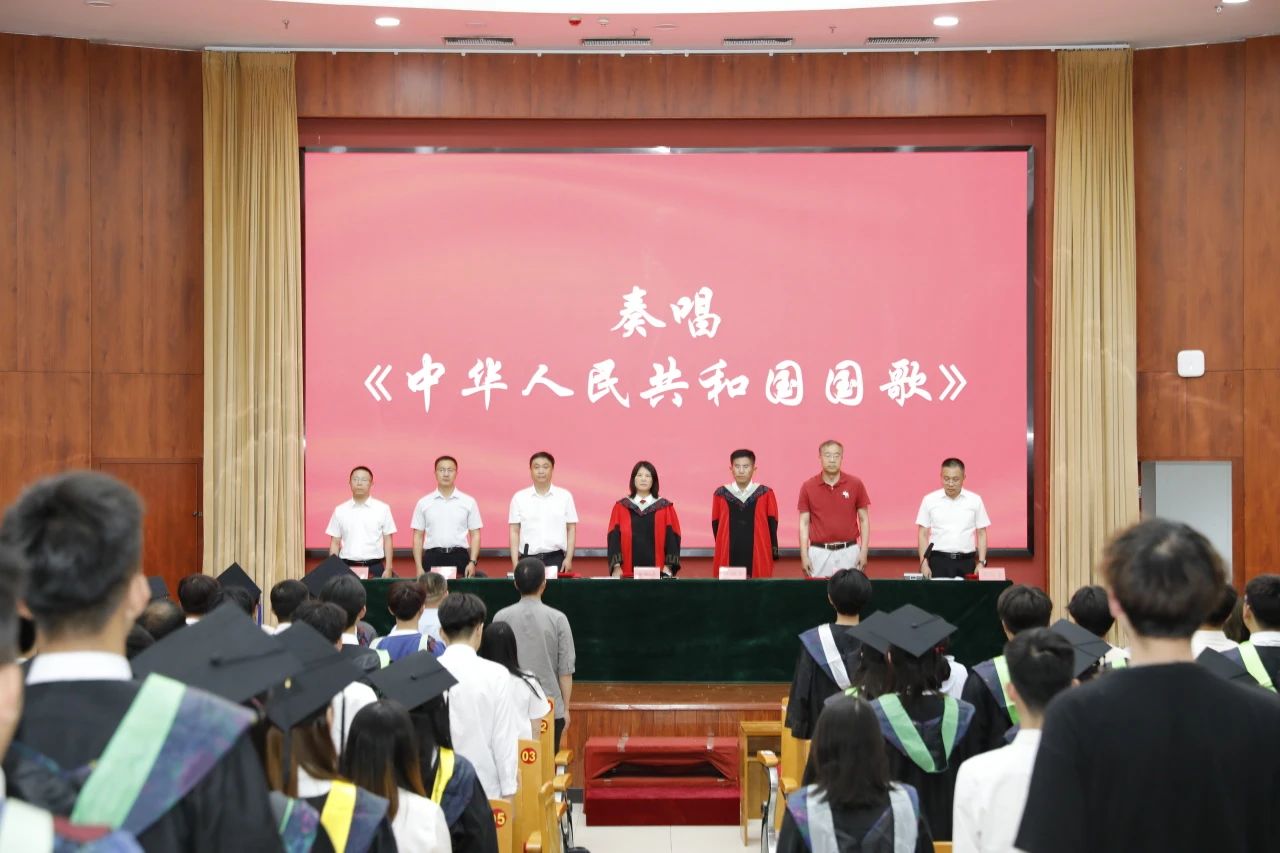 典礼在雄壮的国歌声中拉开序幕。随后播放了林学院2024届毕业生毕业视频,回顾了毕业生四年来的青春岁月,寄托了领导老师们的祝福和期望。林学院副书记、副院长张子谦宣读2024届优秀毕业生名单,学院领导为各位优秀毕业生颁发证书,并为毕业生代表颁发毕业证书。2024届研究生毕业生代表博士生王雪菲发言,表达对学院和老师的感恩之情,祝各位同学都能,一帆风顺,航行万里。本科毕业生代表森保2001班孙彤蕾发言,祝各位老师工作顺利,身体健康,希望各位同学,都能梦想成真,学有所成。在校生代表林学院学生会执行主席崔瑞林同学发言感谢各位学长学姐多年来的关心和鼓励,祝学长学姐们一路繁花,前程似锦。教师代表生态系贾彦龙发言,老师一遍遍的谆谆教诲化作了对毕业生最好的祝福,张子谦转达林学院原党委书记卢振启对毕业生的美好祝愿,林学院党委书记李会平为各位毕业生获取的成绩感到由衷的骄傲和自豪,愿各位毕业生延续太行山道路传承李保国精神,做勤于实践,勇于创新的人。李会平和黄印冉教授为获得博士、硕士、本科学位的毕业生扶正流苏,祝愿同学们壮志在胸,理想在怀,看遍这祖国大好河山,一路高歌,大展宏图。