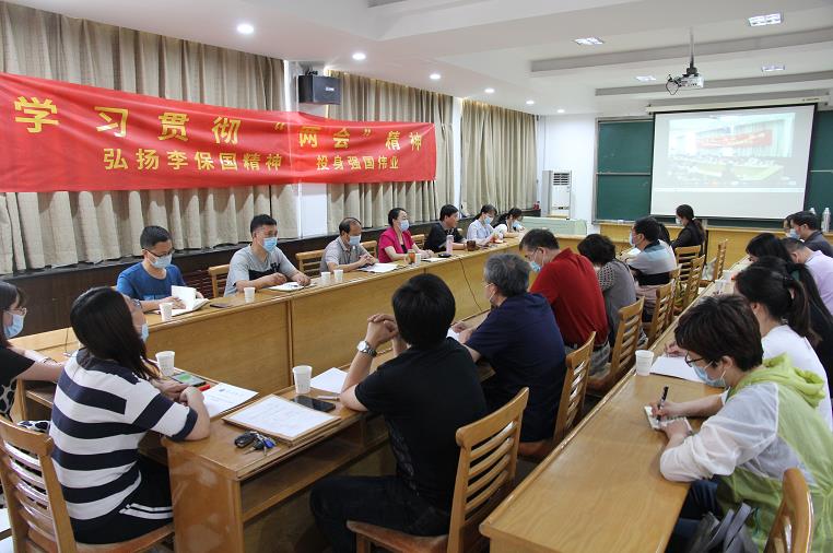 6月5日下午,林学院召开了以“贯彻两会精神,弘扬李保国精神,投身强国伟业”为主题的专题报告会,贯彻学习了习近平总书记在全国两会期间的重要讲话和两会精神。此次会议共设线上和线下两个会场,院党委委员、各支部书记、民主党派代表、李保国团队代表和全体行政人员及部分教师代表在主会场参加了学习座谈,全体教职工和毕业班学生通过线上分会场听取报告,共有近四百人参加了学习、座谈会。