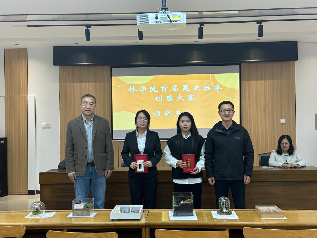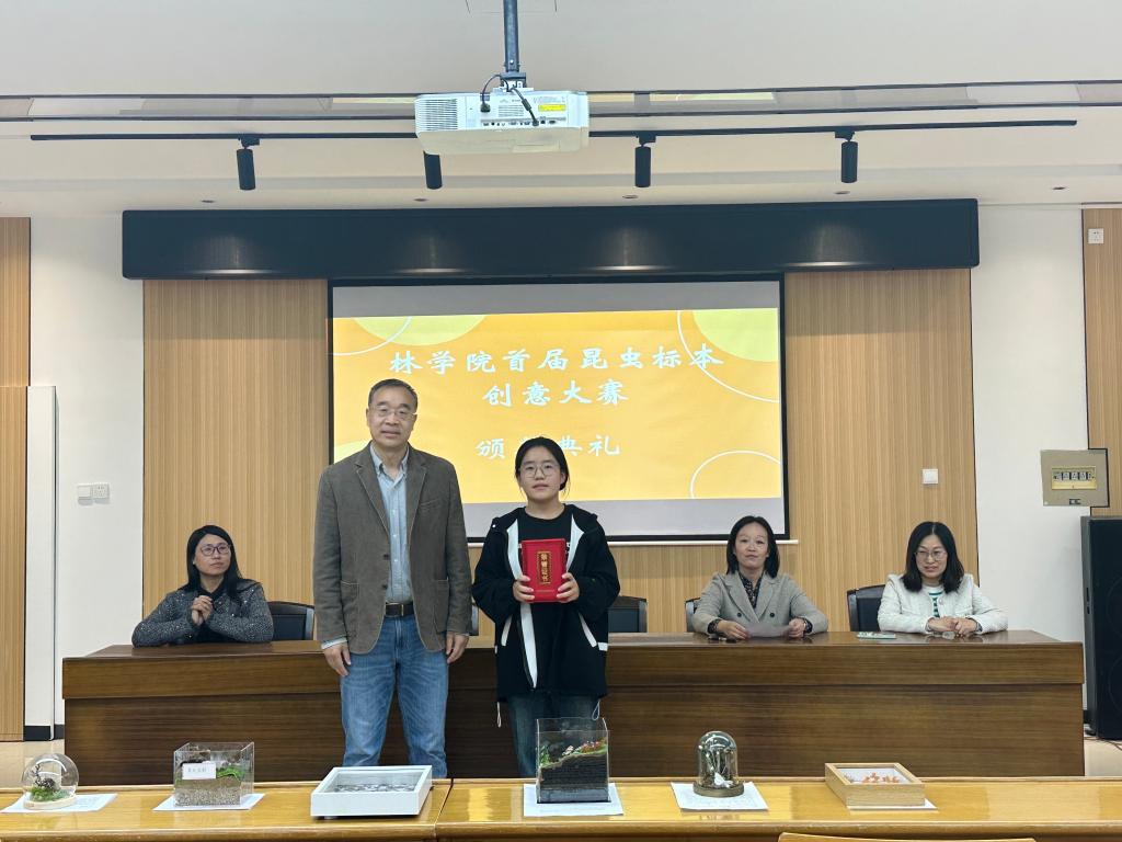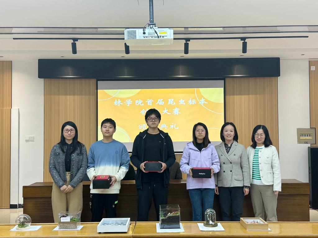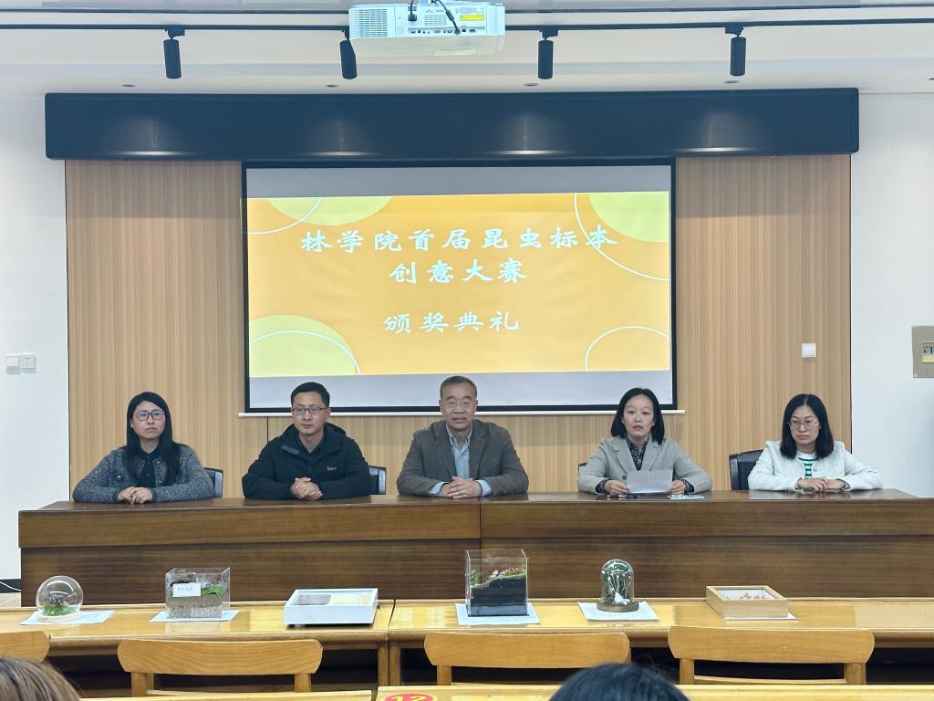 为了进一步贯彻落实立德树人根本任务,丰富学林学生专业系列活动,同时丰富大学生课外校园生活,提高学生对昆虫的认知兴趣及动手实践能力,2023年9月13日至10月13日,林学院面向学院全体本科生举办了18luck新利手机版iso 林学院首届昆虫标本创意大赛。学院邀请到18luck新利手机版iso 林学院副院长许中旗,林学院副院长张国梁,教务处实践教学管理科科长石志建,林学院森林与保护系主任张爽,林学院教学、科研管理办公室主任黄秋娴五位老师作为评委进行颁奖。