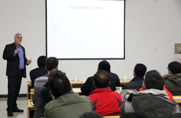 在林学院学术报告厅,Peter Marshall教授和王光玉教授分别作了题为“UBC Faculty of Forestry and its Engagement with China”和“Climate Change and Forest Adaptation Strategies”的学术报告。林学院负责人、教师代表、研究生和本科生150余人参加了报告会。报告会上,Peter Marshall教授介绍了加拿大林业概况、林业教育现状以及UBC大学及林学院的概况、本科和硕士的专业设置、国际林业教育、科学研究等基本情况。王光玉教授在报告中围绕“What’s happening to our climate”、“Main impacts on forests and forestry”、“Strategies for forest adaptation”、“Pilot studies to explore best management practices”、“Global network for combating climate change”等五个方面系统阐释了气候变化对林业研究带来的影响。报告会上,Peter Marshall教授和王光玉教授针对气候变化、林业在气候变化中的作用等热点问题以及UBC大学的“2+2本科教育”、UBC国际暑期教学班、UBC大学录取方法、校园学习生活等相关话题与在场师生展开互动,并针对研究生学业规划交流了自己的理解和建议,现场气氛热烈。