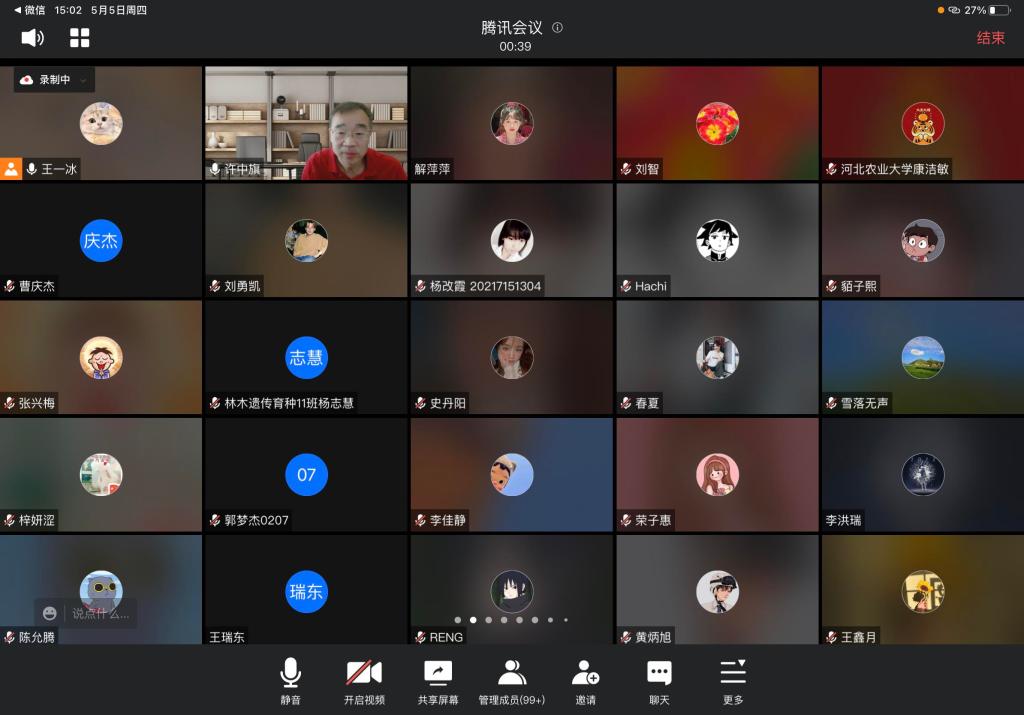 为了加强青年教师之间的学术交流,拓宽研究生的学术视野,营造浓厚的学术氛围,我院于5月5日下午举行了首场青年教师学术论坛报告会。报告会上,吕飞博士和刘强副教授分别作了题为“光肩星天牛成虫视觉信号识别机制”和“落叶松树冠光合特征和碳分配机制”的线上学术报告,来自我院的200余名师生参加了报告会。