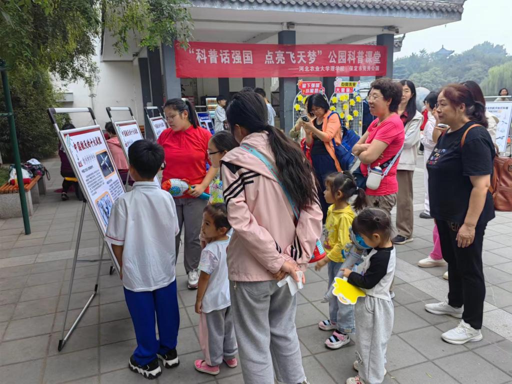 在国庆节即将到来之际,理学院20余名大学生志愿者走进竞秀公园开展“科普话强国,点亮飞天梦”公园科普课堂。