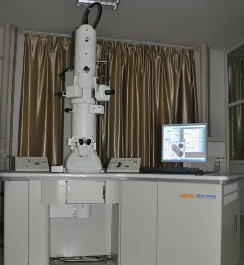 JEOL JEM-1400透射电镜最高加速电压为120 kV,加速电压从40 kV到120 kV可调,一般工作电压为80 kV和100 kV;理论放大倍数为30万倍,一般放大倍数20万倍以下;最高点分辨率:0.38 nm,最高线分辨率:0.2 nm。广泛应用于生物、医学、农林、畜牧、食品、环境、材料科学等领域的各类样品透射电子像获取,表征与观察样品内部超微形态结构及样品横截面的粒度、孔径、缺陷等信息。采用了高衬度物镜极靴,非常适合生物样品、高分子材料等低衬度样品的微区形貌和晶体结构观察。本仪器已为我校师生研究的动植物病毒、病毒样颗粒(VLPs)、食品蛋白质、纳米纤维素、无机/有机材料、组织超薄切片等样品的观察提供了服务。