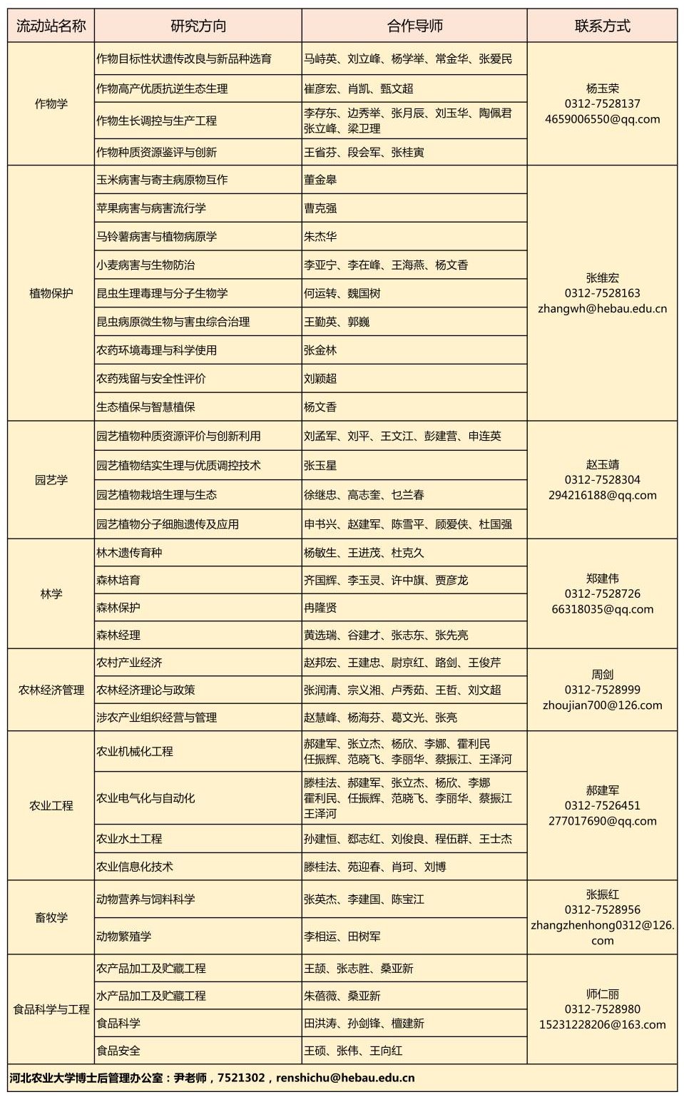学校自2003年10月首批设立作物学、植物保护博士后科研流动站以来,博士后事业取得了长足发展。目前,共有作物学、植物保护、园艺学、林学、农林经济管理、农业工程、畜牧学、食品科学与工程8个博士后科研流动站。截止2021年底,累计招收博士后77人,目前在站博士后28人。在国家深化人才发展体制机制改革的背景下,学校推进实施人才强校战略,积极发挥博士后制度在人才引进中的重要作用,不断优化博士后科研条件和待遇,不断提升博士后管理服务水平,主动服务乡村振兴国家战略,为提升学校自主创新能力和科研工作实力、为建设特色鲜明高水平大学提供强有力的人才支撑。