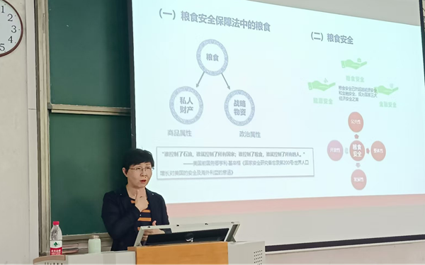 李蕊教授以“全方位夯实粮食安全根基的法治进路——《粮食安全保障法》理解及应用”为题,围绕《粮食安全保障法》的立法特点及评价、保障粮食和粮食安全、为什么要立法保障粮食安全、为什么能保障粮食安全、谁来保障粮食安全以及如何保障粮食安全等话题展开,深入解读了《粮食安全保障法》的立法理念和基本制度。李蕊教授的报告引起了师生的一致好评和强烈反响。
