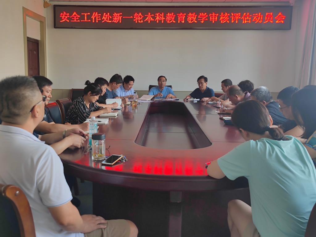 7月18日下午,安全工作处组织全体干部在老办公楼二楼会议室召开新一轮本科教育教学审核评估动员会。