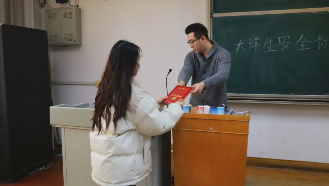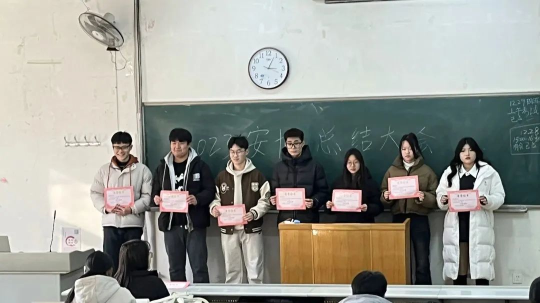 盘点社团活动成果,总结年度工作经验。会上对表现积极、踏实肯干的优秀社团成员进行表彰,颁发“2023-2024学年第一学期大学生安全协会优秀副部、干事”荣誉证书。在过去一年中表现突出的个人和团队代表发言并分享自己在社团及大学生活中的经验和感悟。社团指导老师许一腾点评总结,希望同学们在新的一年里积极参加安协活动,与安协共成长、共进步,配合安全工作处开展工作,为校园安全稳定作出贡献,并祝安协同学在新的一年里梦想成真,学业有成!