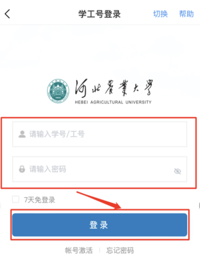 (2)打开今日校园APP,选择下方【学工号】(教职工输入工号、学生输入学号)登录。点击右上角【切换】,搜索“18luck新利手机版iso ”。