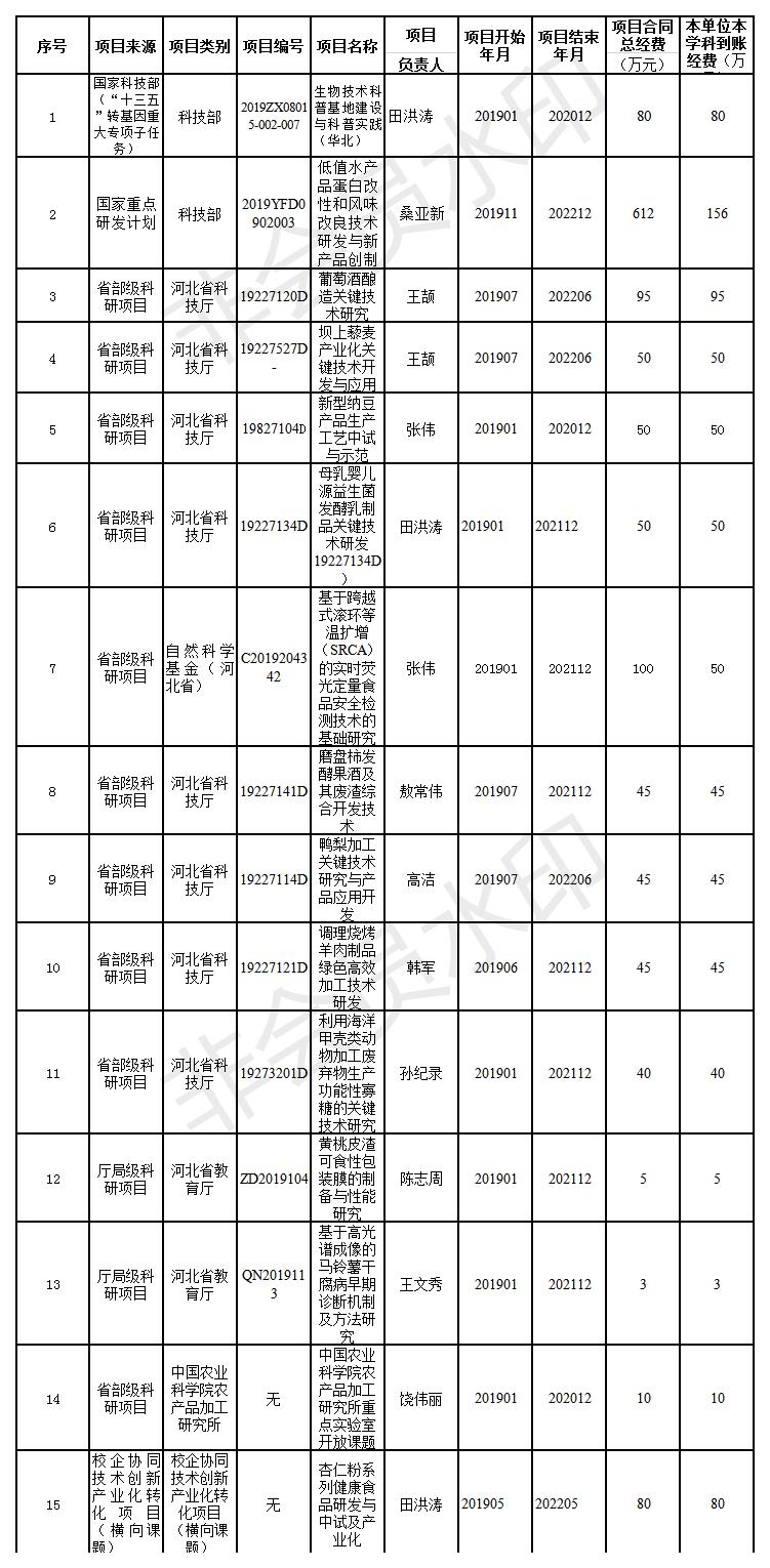 2019年科研项目