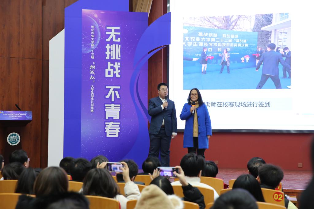 青春逢盛世,挑战正当时。12月3日,我校第23届“挑战杯”大学生创业计划竞赛决赛暨科创集市在西校区图书馆成功举办。学校党委副书记王英出席活动开幕式并讲话,校团委、创新创业教育指导中心、学生处、教务处、科学技术研究院主要负责同志,各学院学生工作、双创工作负责人,参赛师生代表500余人参加活动。王英表示,越来越多的农大学子把自己的人生追求同国家发展进步紧密结合起来,在创新创业中展示才华、服务社会,充分体现了学校面向服务国家战略和产业发展需求,持续进行教育教学改革,全面提高人才培养质量的不懈努力。他鼓励师生,要以大赛为课堂,坚定科技报国志向;要以大赛为平台,锤炼服务社会本领;以大赛为舞台,抓住青春出彩机会。他希望广大青年大学生永葆对新科技、新思想、新研究的向往和热爱,在“挑战”上勇于探索,在“创新”上肯下苦功,坚守理想、焕发朝气、信仰奋斗,让青春活力熠熠闪光,用青年之肩扛起明天。在热烈的气氛中,王英与主办单位、承办单位负责人一同启动终审决赛。