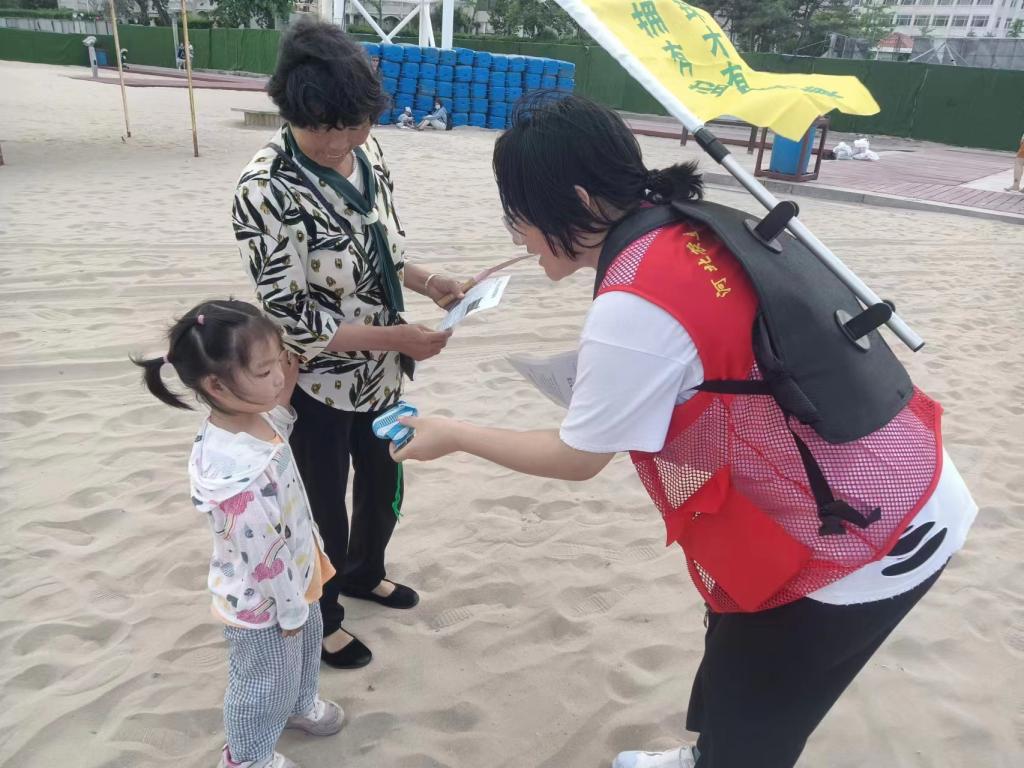 6月8日当天,志愿者们走进学院周边社区、走向海滩,为居民和游客发放印有“海洋科普知识进万家”、“海边游玩注意事项”的宣传材料和环保袋,向人们宣传海洋文化,讲解滨海游玩注意事项,呼吁民众提高海洋意识,关爱海洋环境。