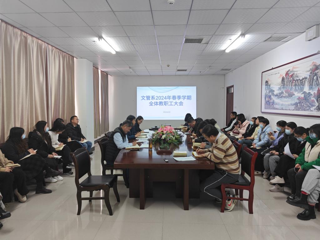 2月29日下午,文管系在渤海校区崇德楼0708会议室召开春季学期全体教职工大会。文管系领导班子及全体教职工参加会议。