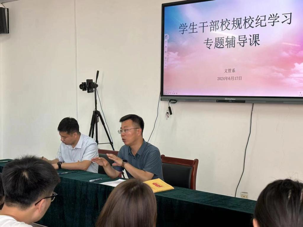 为提高学生纪律观念、安全意识及文明素养,助力营造文明和谐的校园环境,5月中旬至6月,文管系(学院)开展主题纪律安全教育系列活动,学院领导、全体辅导员及全系在校生共计2000余人次参与活动。
