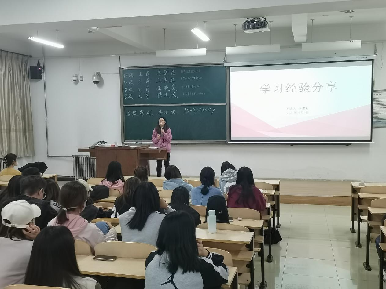 2021年10月9日晚间,文管系2020级工商管理专业于渤海校区2教3211教室组织开展学习经验交流会。此次学习经验交流会,特别邀请到六位2018级保研学生代表就专业课程学习、英语四六级、职业资格证书考取、创新创业竞赛等方面的重要内容为2020级工商管理专业的全体学生进行宣讲和交流,旨在提升学生的专业学习能力和整体综合素质。