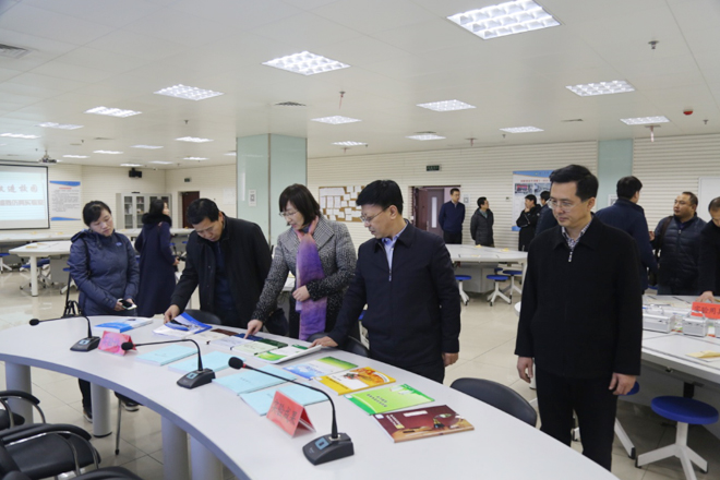 校长、雄安新区发展研究院院长申书兴,党委常委、雄安新区发展研究院常务副院长李彤,商学院教学副院长尉京红陪同参观文管实验中心。尉京红副院长介绍了文管实验中心的基本情况,以及我院双创教育、学生实验实践能力培养、学生参与竞赛及获奖情况等内容。王兆阳一行对文管实验中心的建设和实验教学取得的成绩给与充分肯定,并提出宝贵意见。