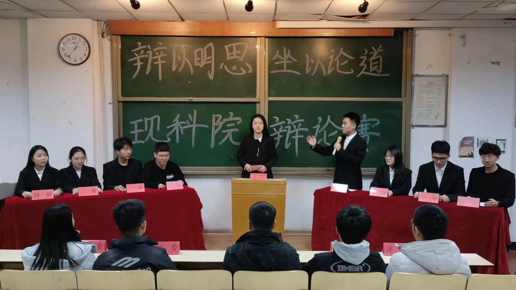 2023年11月30日,由现代科技学院团委主办、学院学生会承办的"辩以明思,坐以论道"为主题的辩论赛决赛在东校区1教204成功举办。