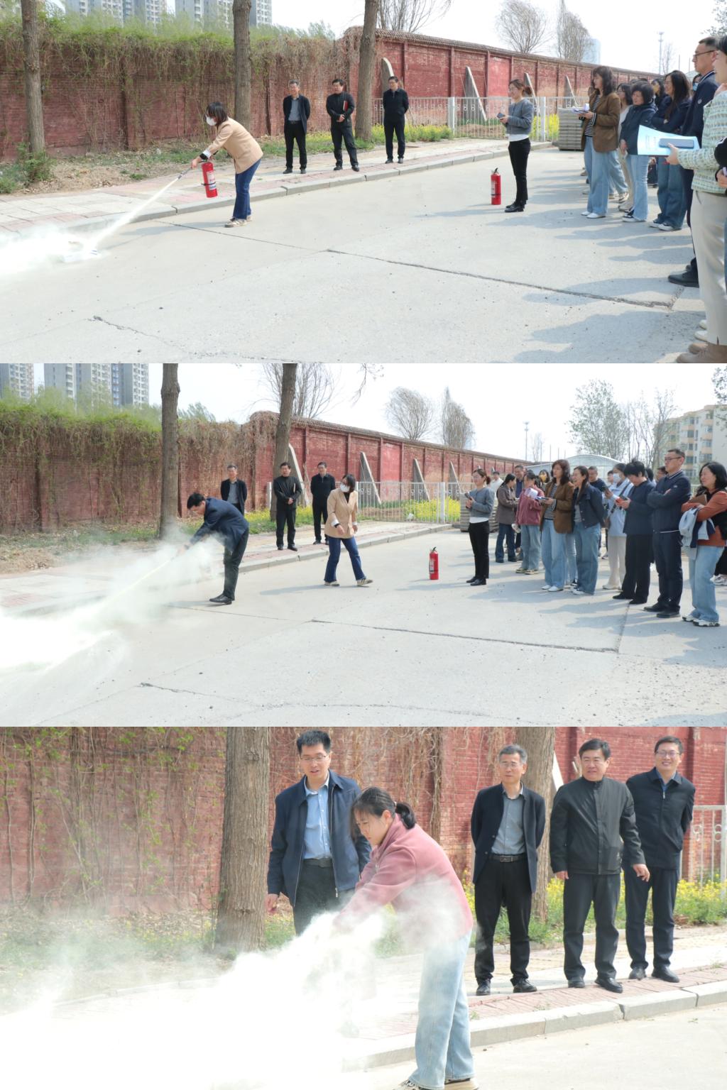 会后,全院职工参加了灭火器使用实操演练,学院领导班子对档案室、画室等重点区域进行安全检查。