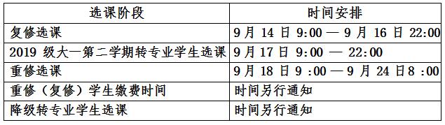 2.重修(复修)选课结束后,缴费学生必须在规定时间内缴纳学分学费,否则视为放弃重修(复修)选课,缴费结束后教务处删除选课结果。