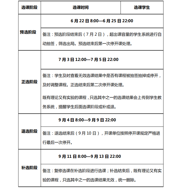 1.请同学按要求参加选课,并随时关注选课公告。每天下午16:00—17:00进行选课数据调整,届时将临时关闭选课系统。