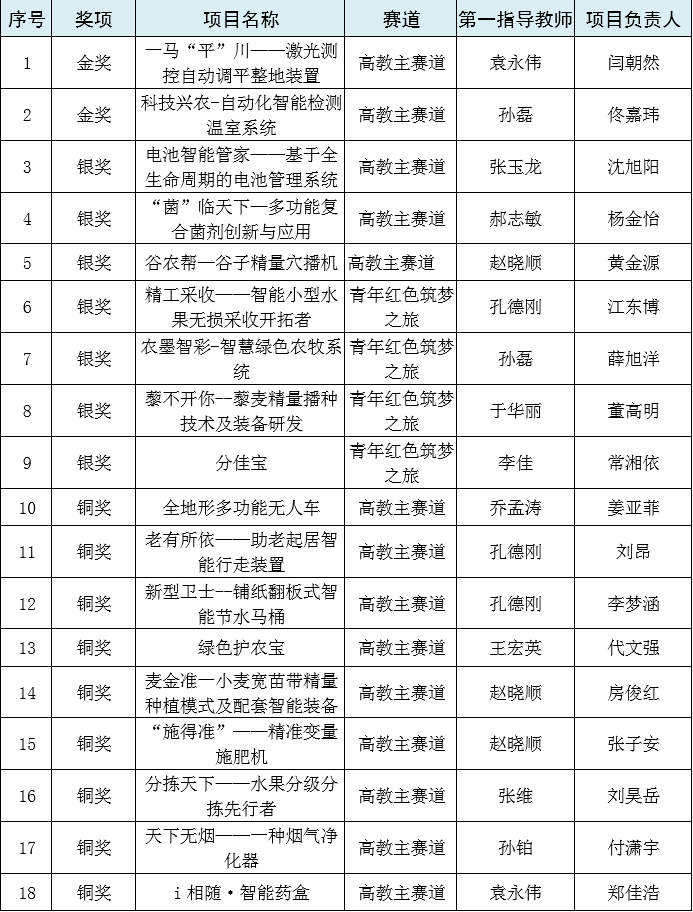 我院有23项作品获奖,其中金奖2项,银奖7项,铜奖14项。“一马‘平’川——激光测控自动调平整地装置”、“科技兴农-自动化智能检测温室系统”2个项目已入围全国赛。