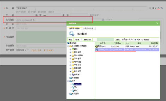 4、前台页面,点击文章标题,即可弹出下载框,下载文件。