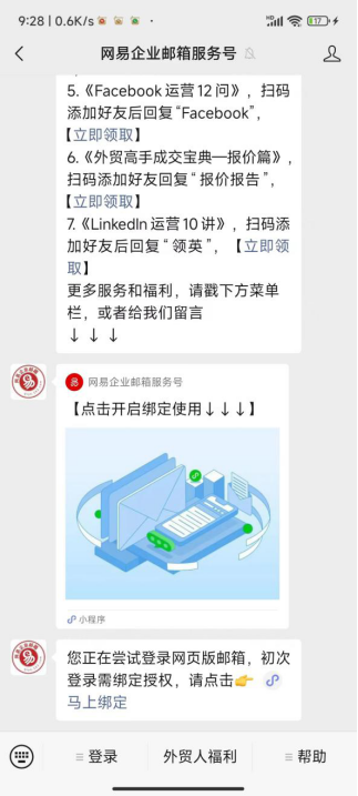 扫码后,根据手机提示关注服务号【网易企业邮箱服务号】——点击马上绑定——输入邮箱账号+统一身份认证密码。