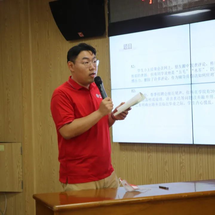 以《持之以恒跑好思政工作“最后一公里”》为题,分享了本学院宿舍管理及宿舍文化建设思路。
