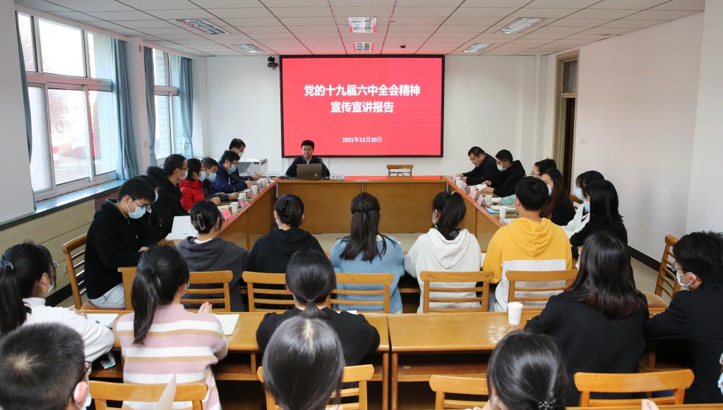 12月20日下午,校长申书兴在西校区耕读楼2楼报告厅与所联系的食品科技学院师生代表座谈交流,宣讲党的十九届六中全会精神。校长办公室、食品科技学院负责同志参加座谈,学院党委副书记兼副院长赵金辉主持宣讲活动。学院党委委员、党支部书记、教师代表、学生代表60余人参加活动。
