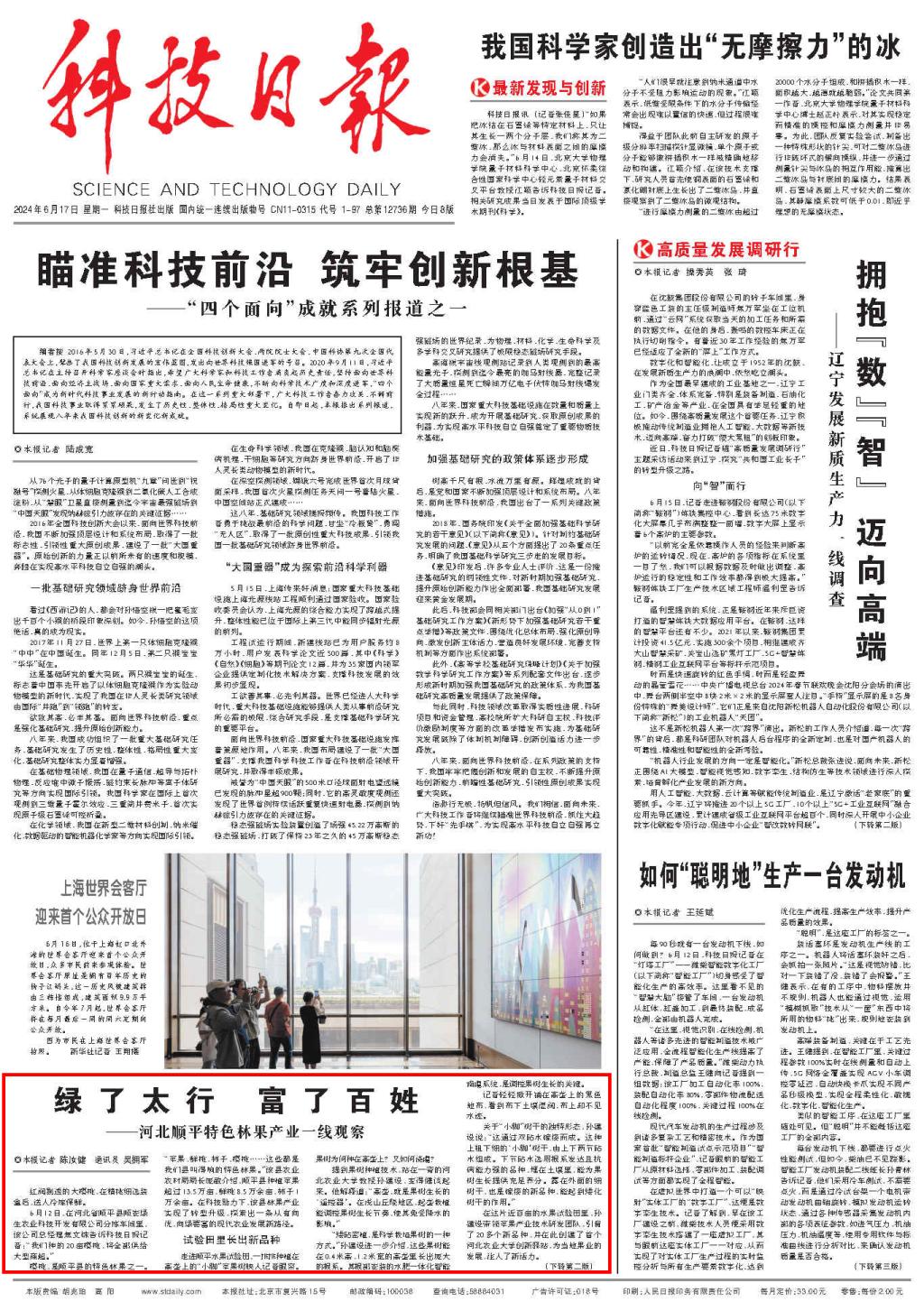近日,《科技日报》在头版以“绿了太行 富了百姓——河北顺平特色林果产业一线观察”为题报道了我校科技赋能顺平县林果产业,推进农业产业转型升级,助力乡村振兴。