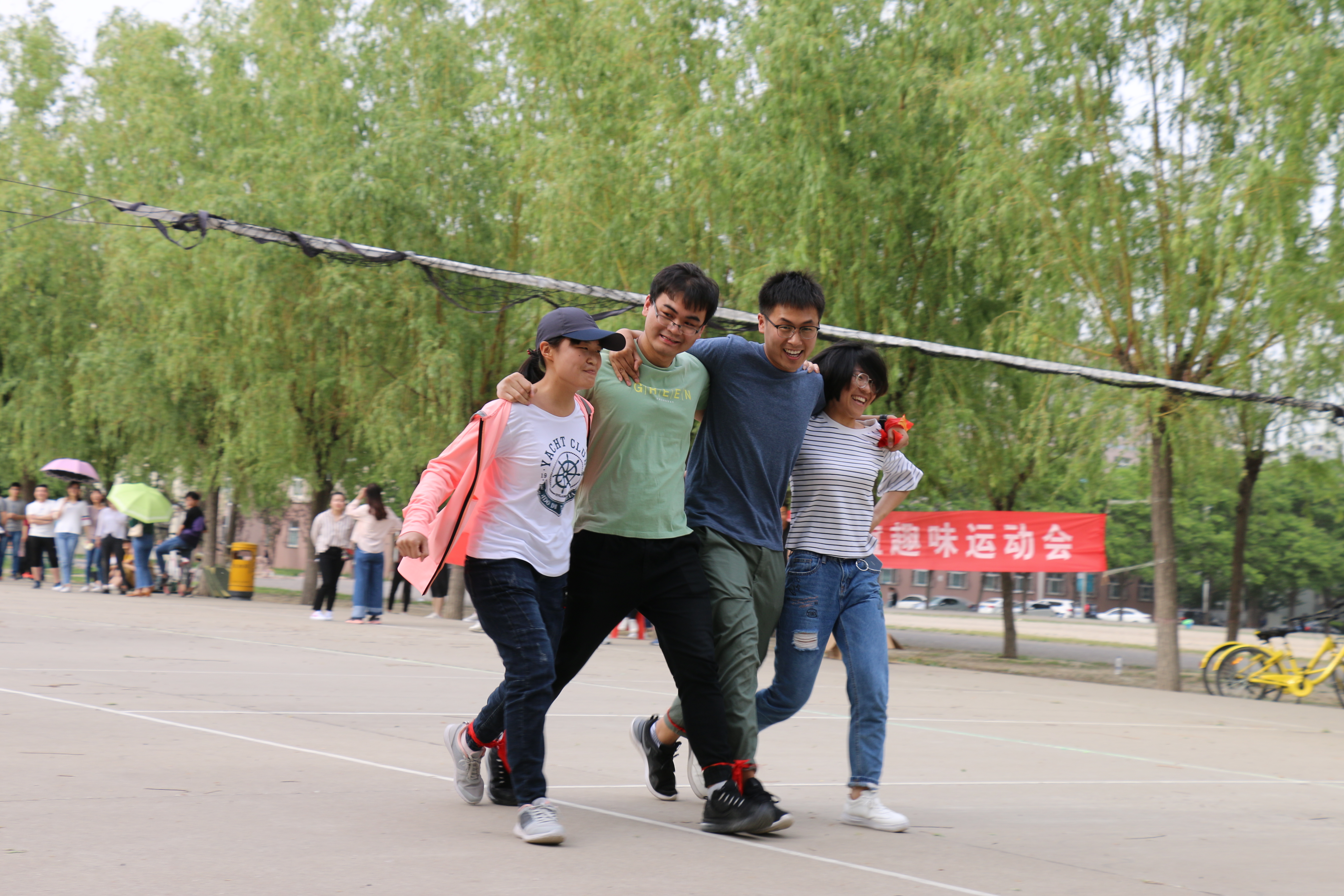 本次活动以“青春有你,相遇不止”为主题,所设比赛项目均需研究生结队配合完成,分别是:“夹球接力跑”、“自行车慢骑”、“互帮互组”以及“四人五足”。为了保证安全,同学们进行充分的赛前热身准备,积极参加各项比赛。比赛中,大家团结协作、顽强拼搏。赛场上,掌声、笑声、欢呼声、助威声此起彼伏,场面火爆。