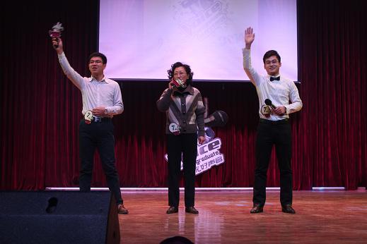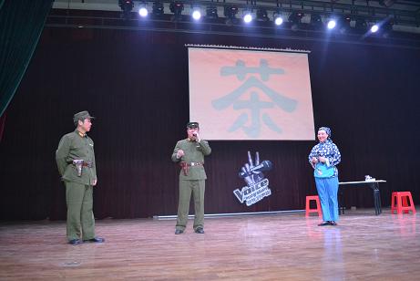 由高宝嘉副校长、研究生学院滕桂法院长与外语学院侯艳宾老师联袂友情出演的现代京剧《沙家浜 智斗》选段,把演出现场气氛推向高潮。三人悠扬婉转的唱腔,惟妙惟肖的动作,夸张到位的表情,将扮演人物斗智斗勇刻画地入木三分。比赛最终评选出一、二、三等奖和最佳人气奖、最佳默契奖。