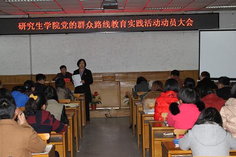 党委书记伊绯同志首先传达了中央关于开展党的群众路线教育实践活动的精神和中共18luck新利手机版iso 委员会深入开展党的群众路线教育实践活动实施方案。其次,她详细介绍了学院党委开展群众路线教育实践活动的实施方案,并结合研究生学院实际情况,提出了学院党委及各党支部的目标要求、实施步骤和工作要求。伊书记强调,一要深刻认识开展党的群众路线教育实践活动的重大意义,二要准确把握教育实践活动的各项要求。学院教育实践活动要紧密结合研究生教育实际,做到与深化研究生教育改革结合,做到与研究生教育体制机制创新结合,做到与提升研究生素质工程结合,通过教育实践活动推动研究生教育改革各项措施的落实,实现研究生教育科学发展、和谐发展。