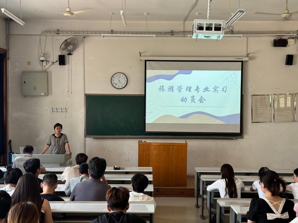 6月20日上午,园林与旅游学院召开旅游管理专业2021级本科生实习动员会,全面部署学生的实训实践工作,确保同学们能够顺利、安全、有效地完成实习任务。动员会由旅游系主任贾哲老师和学工办主任张丽芳老师共同主持,旅游管理专业2021级本科生参加。