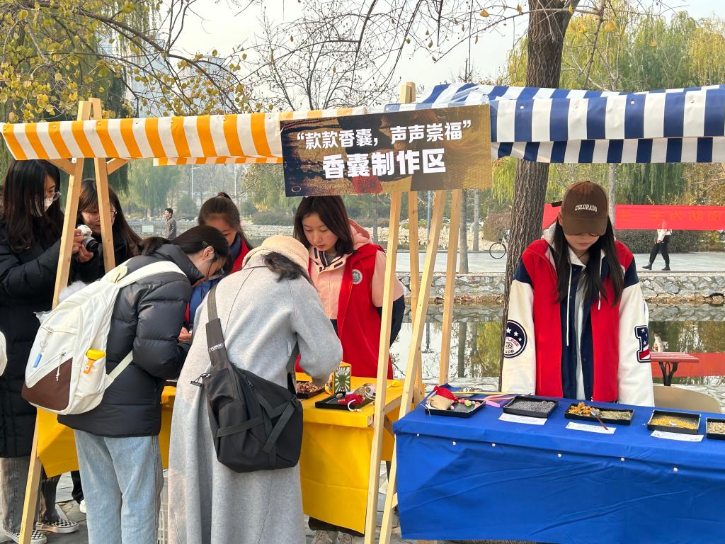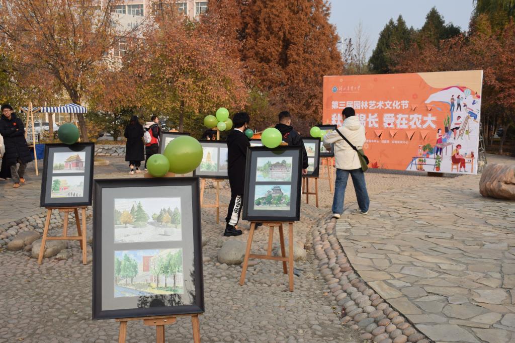 活动现场分为园林文化节优秀作品展示区、手工体验区、以及实习优秀课程展示区。文化节优秀作品区分别展示了“定格农大之秋”“问鼎千秋”“秋月谣”等园林艺术插花、组合盆栽和园林文创等优秀作品;优秀课程展示区展示了学院风景园林和园林专业赴校内外实习期间绘制的名胜古迹、公园和学校耕读园等作品;手工体验区现场体验制作香囊、干花书签、拓印以及开展创意手工等,让更多同学了解中国传统文化,近距离感受园林艺术的魅力。