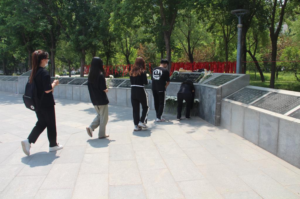 活动以各班级为单位分时间段进行。老师同学们着装严整,神情肃穆,自觉排队来到文化园内,在主持人的组织之下依次向袁老献花,并集体默哀,追忆袁老的生平,袁老的淡泊坚韧、无私耕耘使在场师生无不动容,默哀结束后,师生们深深鞠躬致意,以示对先辈的悼念与崇敬。追思结束后,同学们亲手在绸带上写下饱含家国抱负的祈愿,悬挂在袁老题字碑上方,以勤奋努力、爱国为民的誓言告慰伟人。