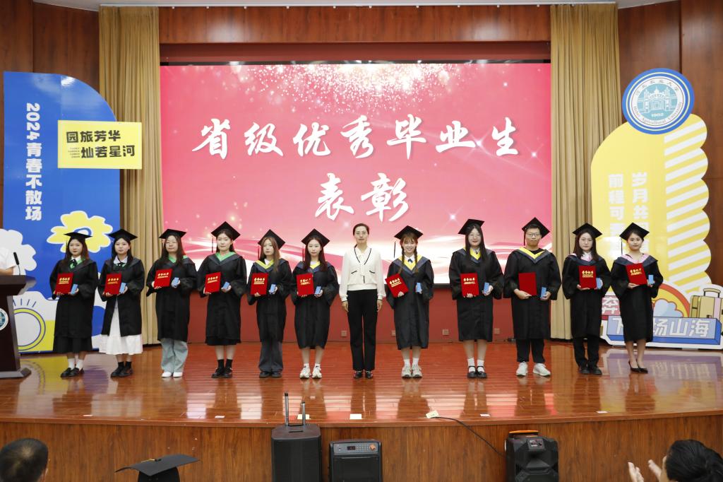 随着庄严国歌的奏响,毕业典礼的序幕缓缓拉开。一部温馨感人的视频《“廿”念不忘》将我们带入毕业学子的世界,一同见证他们的成长与蜕变。为表彰先进,树立榜样,学院副书记时君伟宣读河北省优秀本科毕业生名单,副院长张晓曼为获奖毕业生颁发荣誉证书和纪念品,激励同学们向榜样看齐,努力追求自己的梦想和目标。