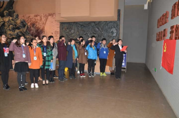 在室内展厅,首先由6位学生党员诗朗诵“五年抒怀,献给党的十九大”,2位学生干部、入党那个积极分子讲述冉庄地道战红色故事,全体党员面向党旗重温入党誓词。学院党委书记张国林带领大家一起背诵党的十九大主题,并向大家简要宣讲了十九大精神。他要求大家认真参观学习冉庄地道战遗址和冉庄人民抗敌的大无畏精神,铭记历史,缅怀先烈,珍惜来之不易的和平环境,以实际行动建功立业,为实现中华民族伟大复兴的中国梦努力奋斗。